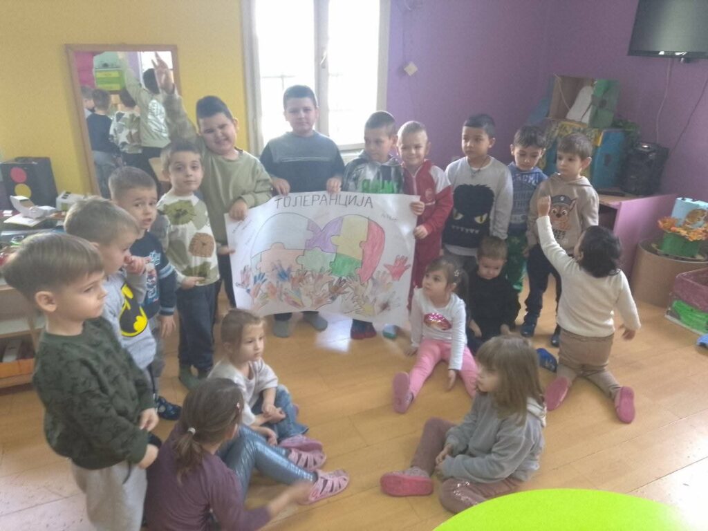 Поводом Дана толеранције наши предшколци су 17. новембра са васпитачицом Данијелом посетили млађе другаре у вртићу “Изворчић”. Том приликом су разговарали о лепом понашању, разумевању, пријатељству и израдили постер којим су послали поруку о томе како треба неговати различитости и међусобно се уважавати. Хвала нашим другарима и васпитачици из вртића на сјајном дружењу!