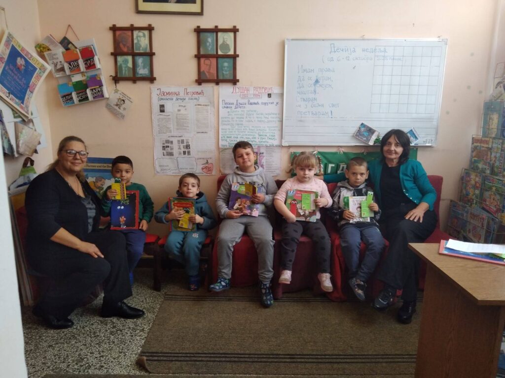 У матичној школи предшколци су традиционално посетили школску библиотеку, разгледали је, причали о томе како се књиге чувају, добили чланске карте и обележиваче и позајмили сликовнице.