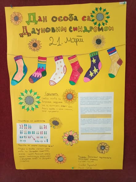 У петак смо у нашој школи обележили Међународни дан особа са Дауновим синдромом са циљем подизања свести о потребама особа с Дауновим синдромом, подстицања међусобног уважавања и разумевања међу вршњацима.