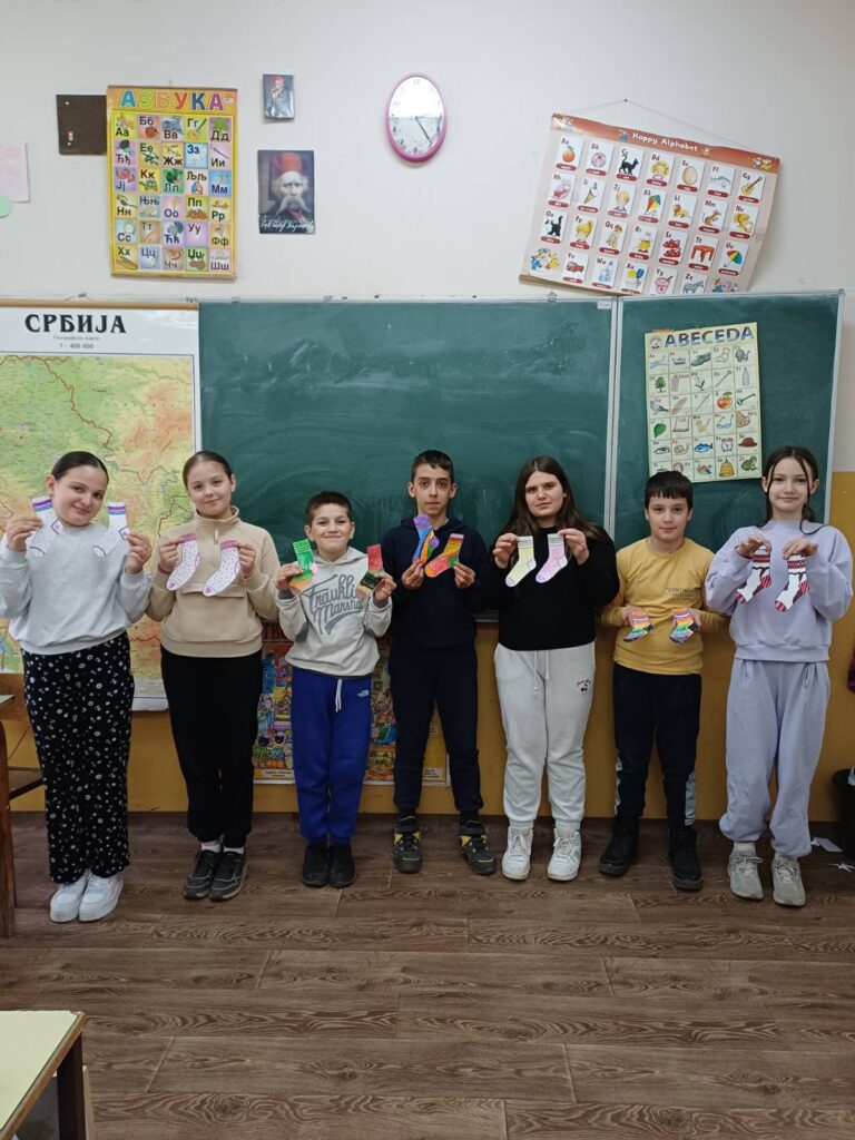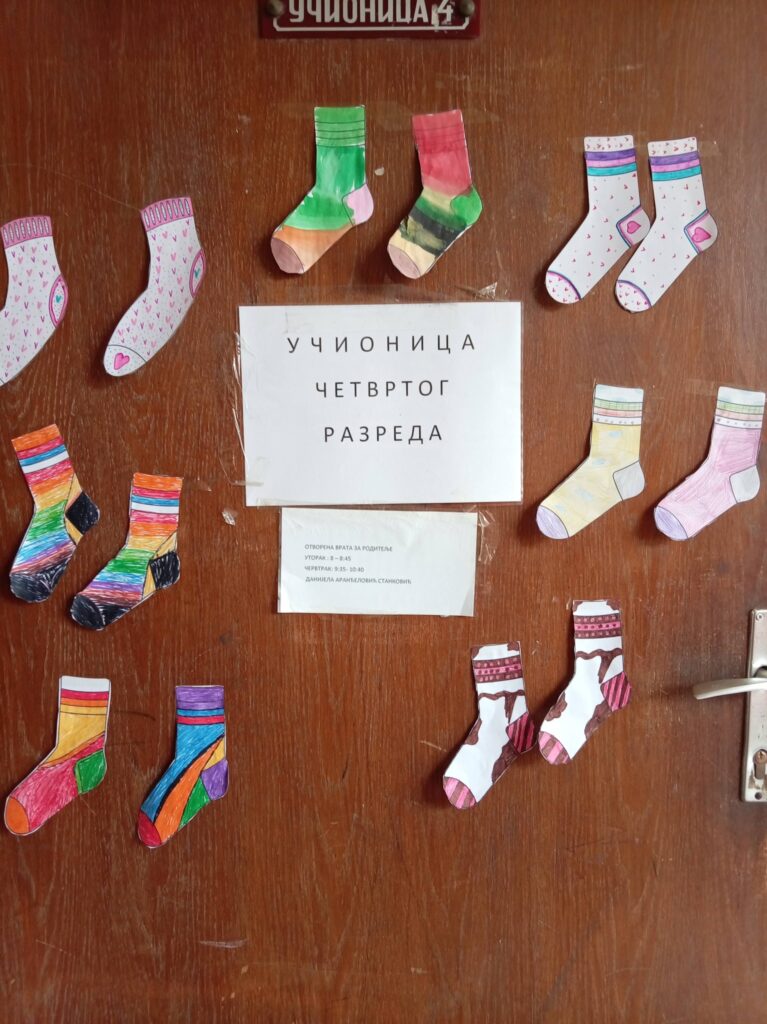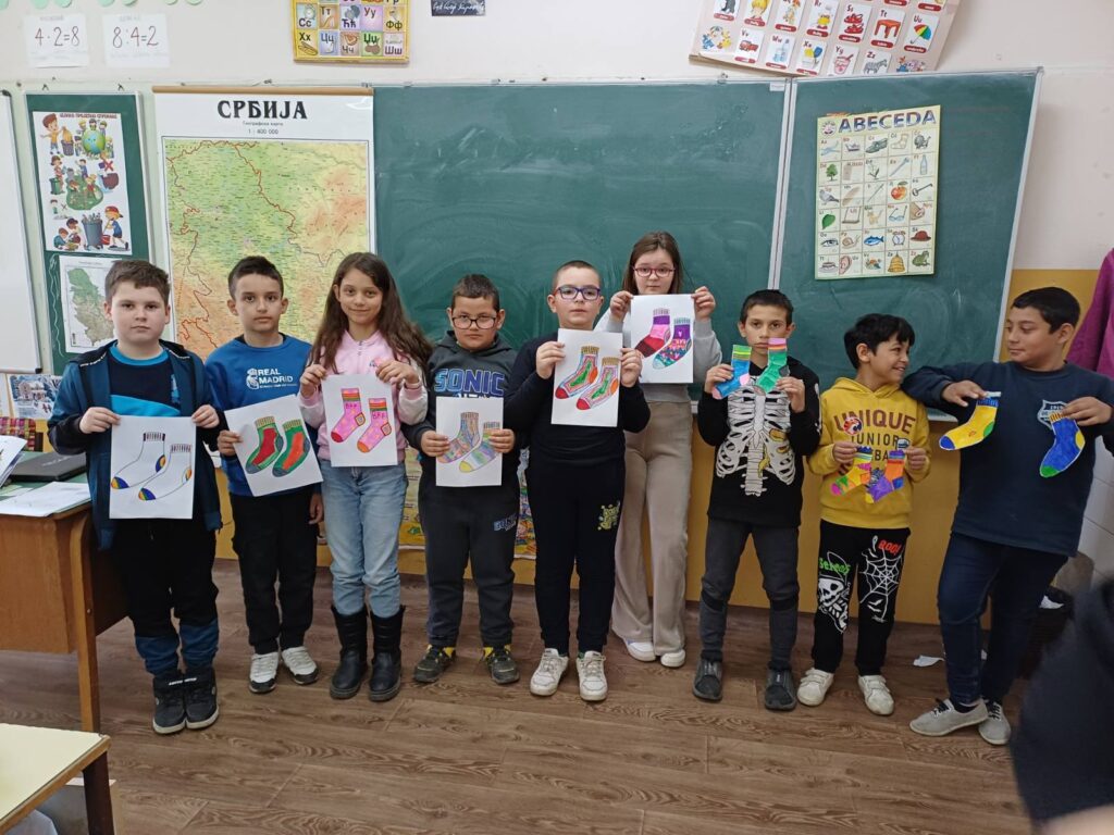 Чланови Ученичког парламента су поводом овог датума направили пано па су ученици затим имали радионице са педагогом на којима је овај пано представљен. Предшколци и ученици нижих разреда су потом украшавали шарене чарапе, а ученици виших разреда су писали лепе поруке на балонима.