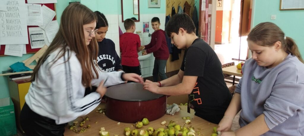Ученици петог разреда су се 20.11.2025.године бавили израдом сирупа од крушака, јабука, дуња и лимуна у оквиру обогаћеног једносменског рада са својим одељенским старешином Бранишом Ђорђевићем.