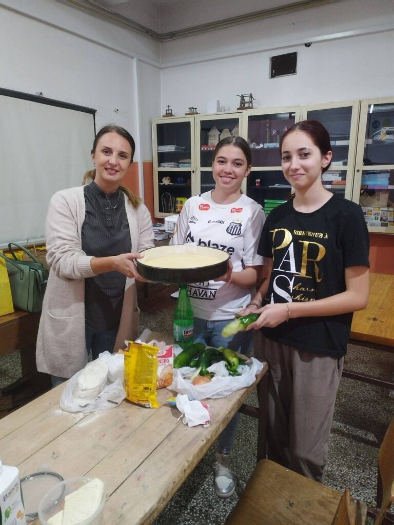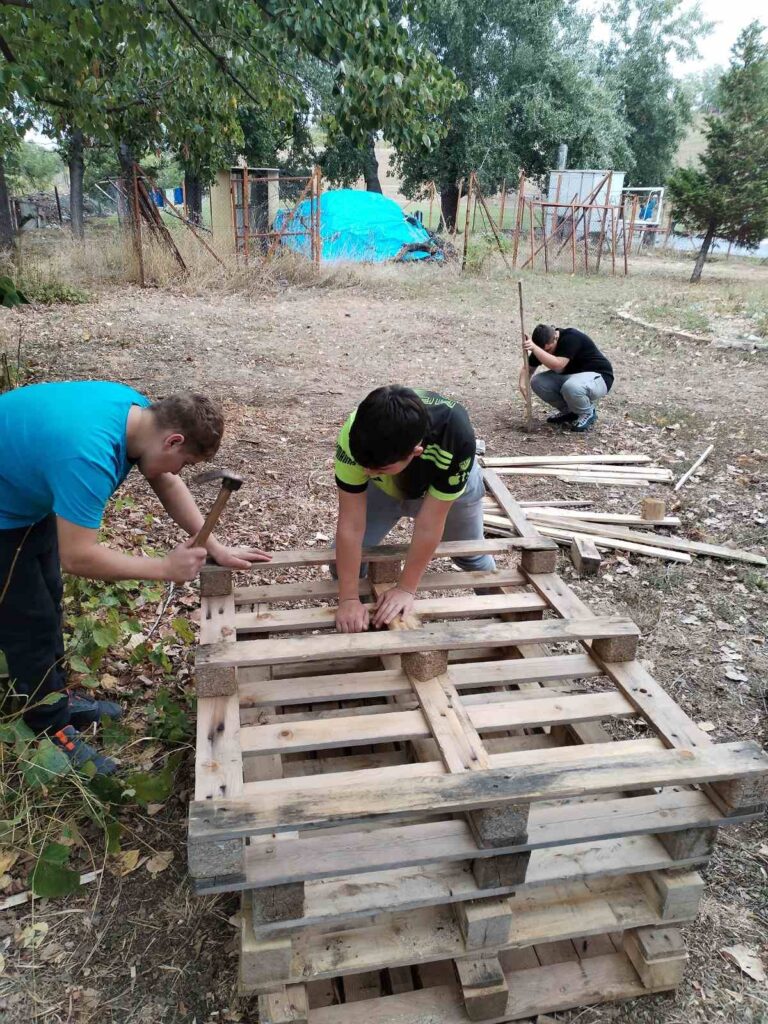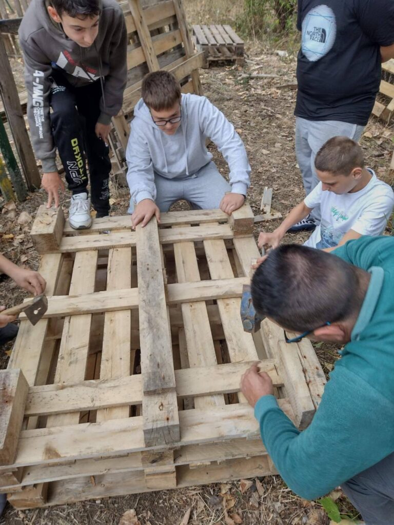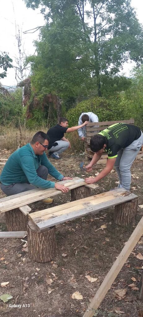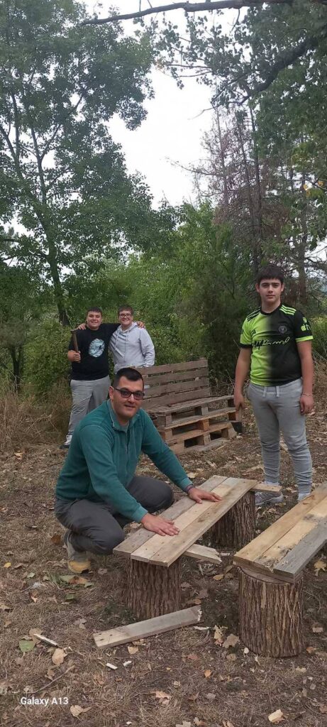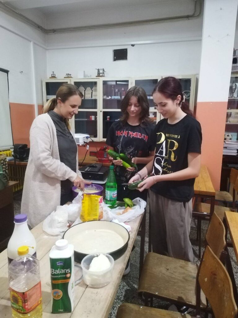 Ученици осмог разреда су са наставницима у оквиру обогаћеног једносменског рада правили клупице и столове, али и проју којом су се на крају активности послужили.